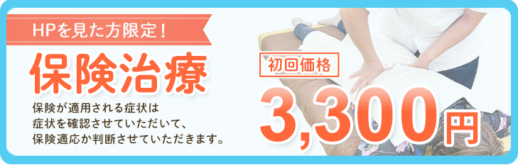 * 保険が適用される症状は、骨折・脱臼・捻挫・打撲・肉離れなどの傷病にのみとなります。単なる肩こり、腰痛などに対する柔道整復術治療には、保険が適用されませんのでご注意ください。